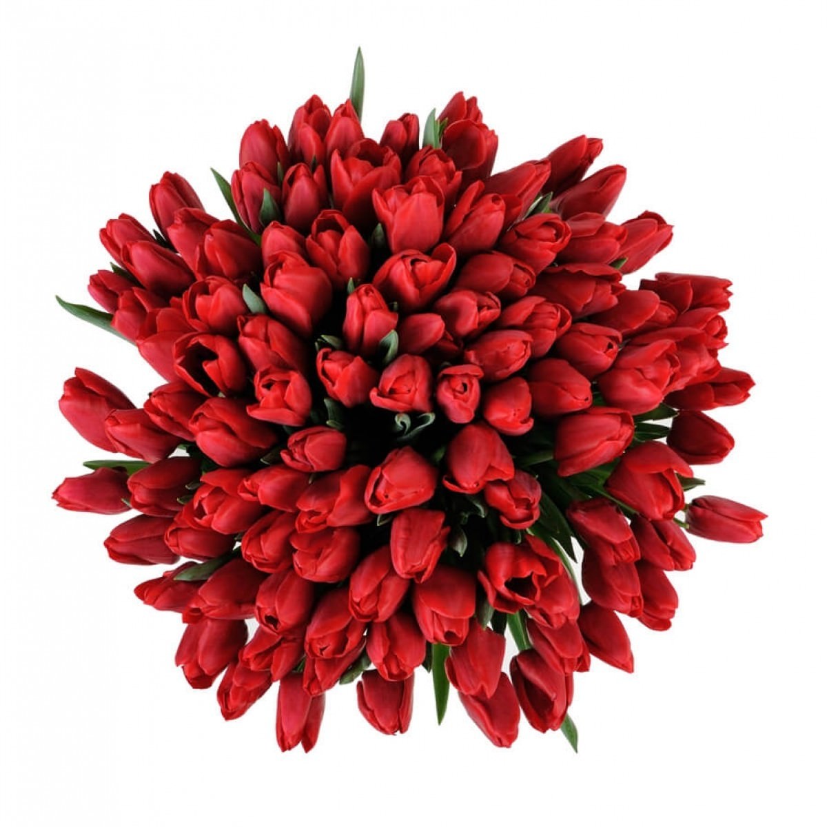 Букет красных тюльпанов под ленту — 101 штука